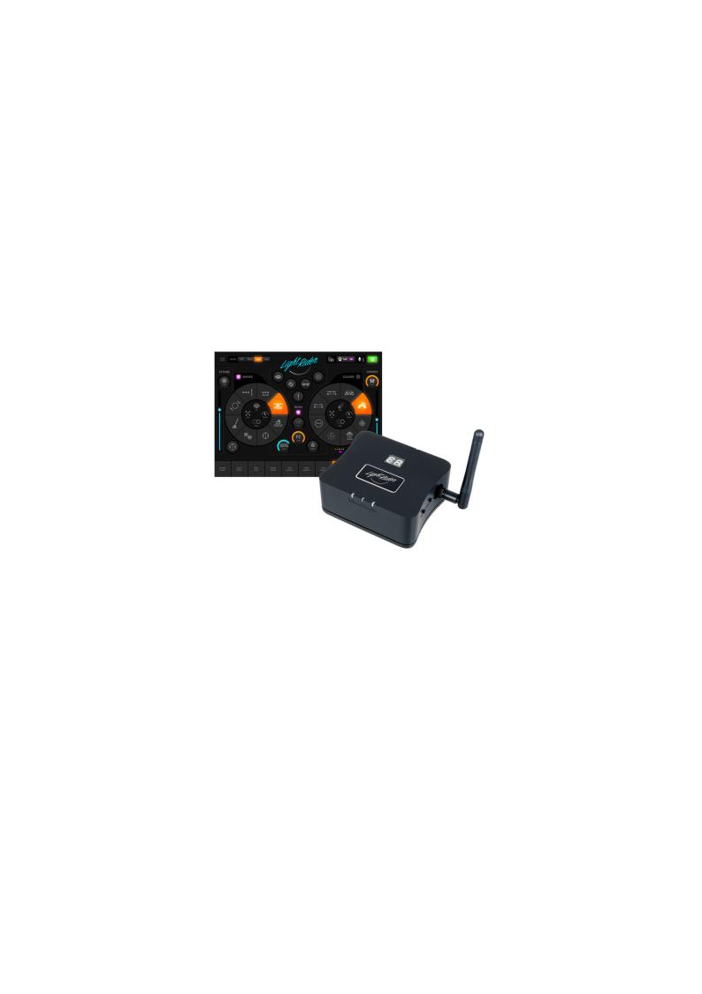 LR512 LIGHT RIDER – Pametno WIFI DMX sučelje, 512 DMX OUT kanala proširivo na 1024 kanala za korištenje s drugim softverom koji podržava SUT tehnologiju (vidi dmxsoft.com. Light Rider trenutno podržava maksimalno 512 kanala). 100K samostalne memorije sa satom/kalendarom.